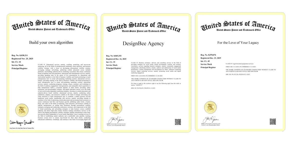 In the era of entrepreneurship, your brand needs to be unique, identifiable & protected. Claim your intellectual property & truly, own your brand with a registered trademark through the United States Patent and Trademark Office